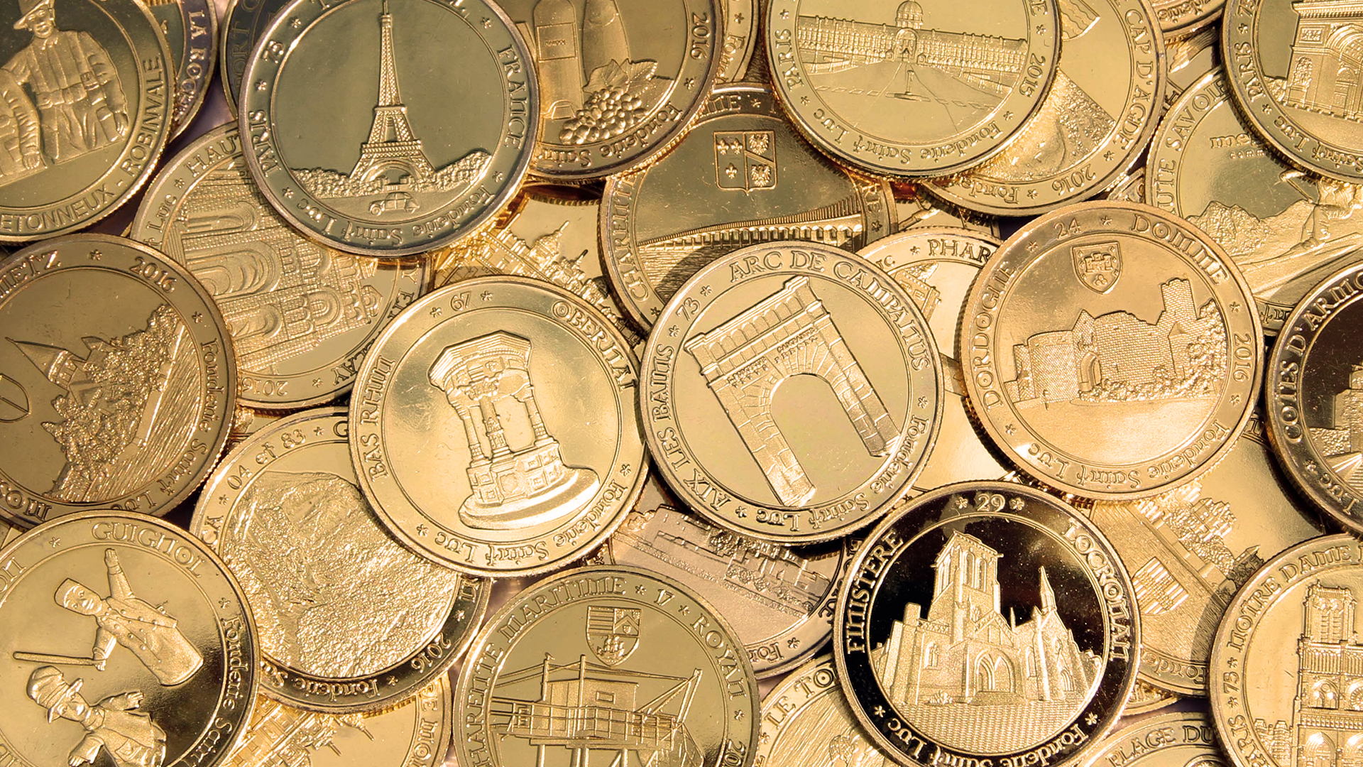 La medalla de recuerdo en color «dorado», diámetro 34 mm es EL producto para ofrecer absolutamente a sus visitantes. Personalización a partir de 1500 ejemplares. Acabado 3D, Colección Internacional. También podemos producir todo tipo de medallas (dimensiones, colores, etc.) bajo pedido. No dude en contactarnos para obtener un modelo y una cotización gratis.